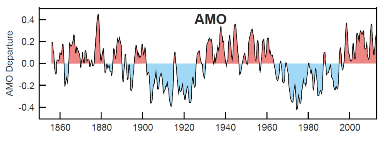 Verlauf der Atlantischen Multidekadenoszillation (AMO) seit 1860.