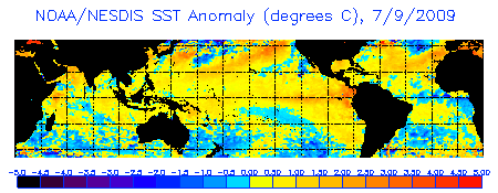 The La Niña is evident by the large pool cooler than normal (blue