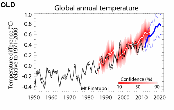 Bis 2018 wird´s nicht mehr wärmer!. Der britische Wetterdienst hat nun als eine der ersten wichtigen Organisationen die Reißleine gezogen und seine Erwärmungsprognose drastisch reduziert. Nach anderthalb Jahrzehnten Erwärmungsstopp wurden nun beim UK Met Office offensichtlich die Modelle überprüft und die Idee eines unmittelbar bevorstehenden globalen Hitzschubes aufgegeben. |