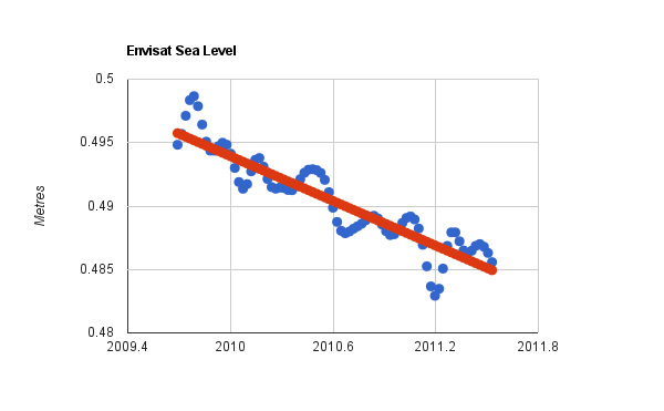 vom 30-jährigen Mittel der satellitengestützten Messungen